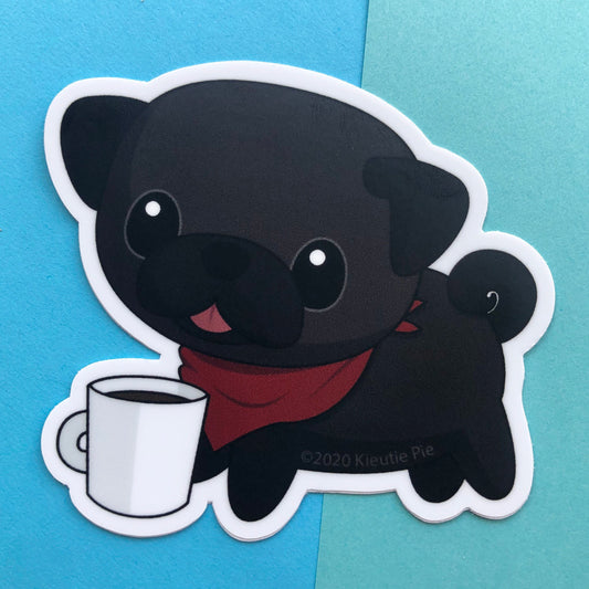 3" Vinyl Sticker - Pug with a Mug Durable Weatherproof Die Cut Matte Vinyl Sticker - car decal, water bottle sticker, laptop sticker